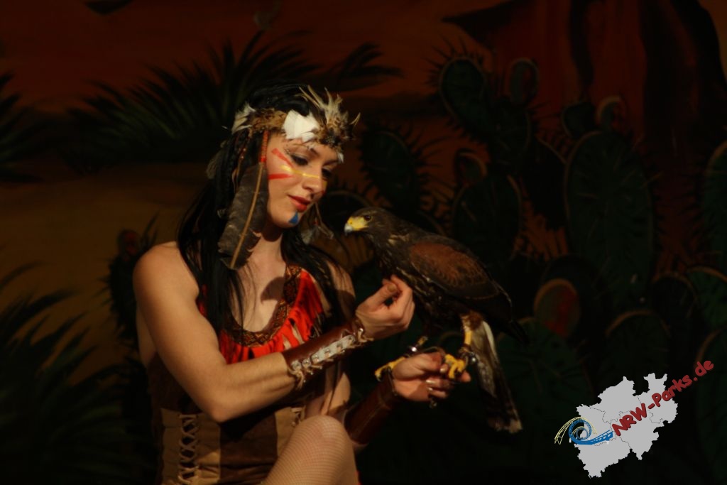 Im Saloon in der Fort Fun City wartet Tala Takenya mit einer Varietè-Show auf die Besucher. Höchste Konzentration ist bei den Artisten gefragt um diese waghalsigen Bewegungen zu zeigen.