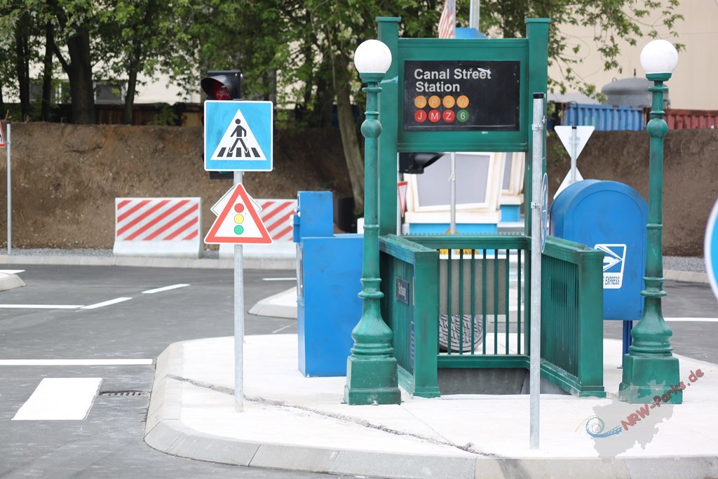 der Training ParcoursMit einer Investitonssumme von 1 Millionen Euro entstand eine 1200 m² große neue Attraktion. Es wurden 900 m² asphaltiert und 152 m Fahrbahnmarkierungen gemacht. Neben den 165 m Zaun waren auch 350 m Entwässerungsleitungen notwendig, da die zu bebauende Fläche die wasserreichste im ganzen Freizeitpark war. Wer aufmerksam den Training Parcours betrachtet wird den Holland Tunnel entdecken. Dass der Parkchef ein Holländer ist, soll nicht der Grund dafür sein, sagt Geschäftsführer Wouter Dekkers selber. "Es gibt einen Holland Tunnel der von New York City nach New Jersey führt." so Dekkers weiter. Die aktuelle Fernsehserie spielt in New York City und dementsprechend fiel die Thematisierung aus. Wir finden dieses Schild ist ein nettes Gimmick.