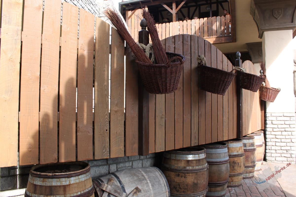 Auf der Rückseite der Baustelle gelegen befindet sich China Town. Nach dem bereits während der Wintersaison schon mit Verschönerungsarbeiten am Hotel Ling Bao begonnen wurde, erhielt nun auch der Themenbereich leichte Veränderungen. Viele Gebäude wurden gestrichen, neue Blumenbeete wurden angelegt und das Wasserbecken am Restaurant Mandschu wurde gereinigt. Die Bühne in der Mitte des Themenbreich wurde auch überarbeitet. Wer den Blick auf den Boden richtet, wird festellen dass Teile des Gehweges ausgetauscht wurden. Die wohl größte Überraschung in China Ton wird für viele die in die Jahre gekommene Geister Rikscha sein. Neben einem Monitor für die Wartezeit erhielten viele Figuren neue Kostüme.