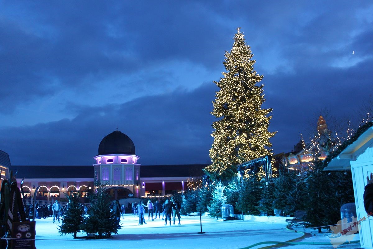 Bereits bei Tageslicht zaubern die zahlreichen Dekoelemte eine winterliche Atmosphäre. Der Mittelpunkt ist dabei der Kaiserplatz mit seiner Eislauffläche und den zahlreichen gastronomischen Ständen. Ganz wie auf einem der zahlreichen Weihnachtsmärkte, kann man sich es hier gut gehen lassen. Auch in den anderen Themenbereichen wurde fleißig dekoriert. Im Gegensatz zum letzten Jahr wurde noch kräftig einer drauf gelegt. Besonders hervorzuheben sind die übergroßen und handbemalten Weihnachtskugeln. Ein idealer Fotopunkt für ein Erinnerungsfoto.