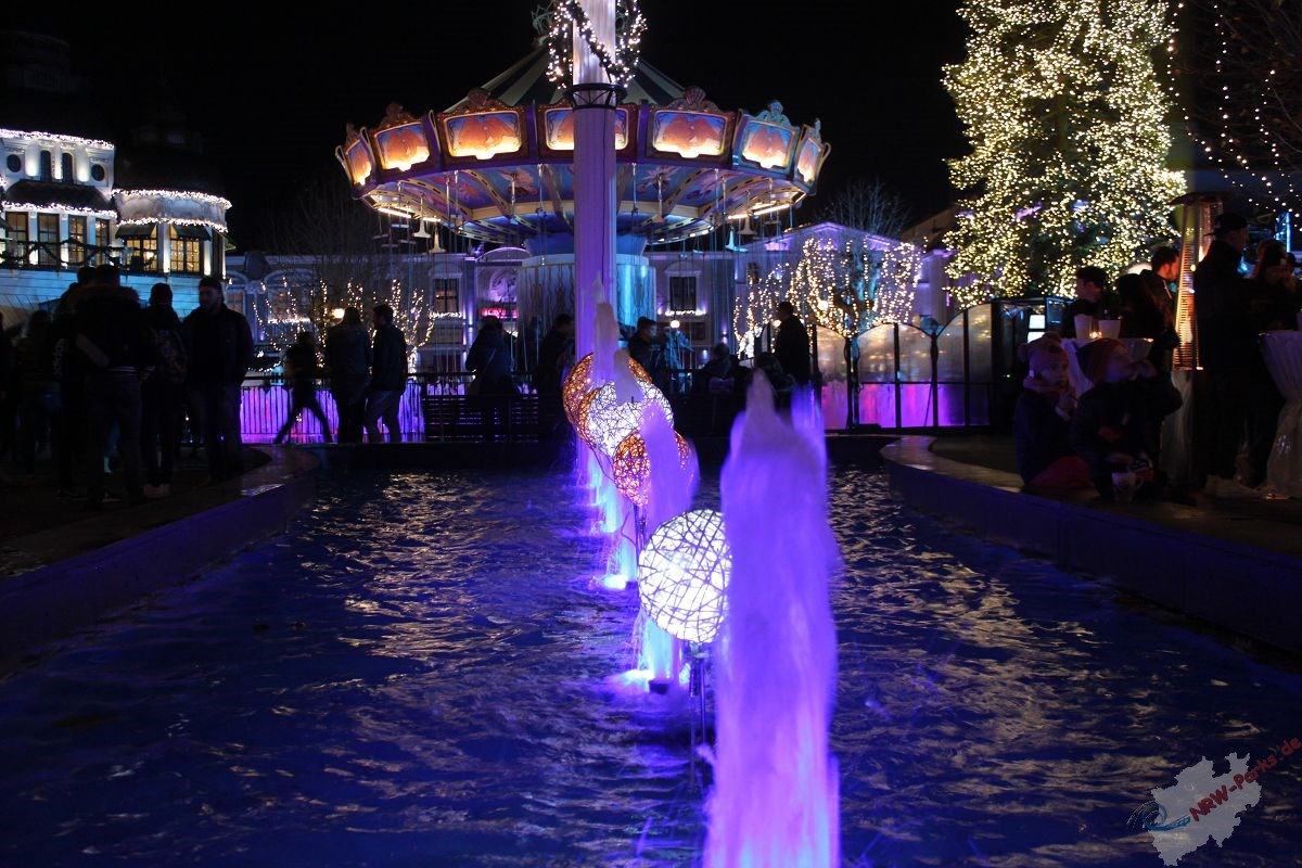 Die wahre Magie des Wintertraums entfaltet sich allerdings erst bei Einbruch der Dunkelheit. Ein gigantisches Lichtermeer erwacht. Tausende Lichter lassen die Augen der Besucher funkeln und stehlen den Fahrattraktionen die Show. Der Themenbereich Berlin erstrahlt mehr als je zuvor. Ein Highlight ist der Übergang zum Themenbereich Fantasy. Wer letztes Jahr von ihm begeistert war, wird dieses Jahr überwältigt sein. In Fantasy angekommen wird es bunt und fröhlich. Beim Blick auf den Mondsee sind 3 große Kugeln kaum übersehbar. Ein feuerspeiender Drache bildet wieder den Mittelpunkt des wundervoll gestalteten Bereich China Town. Auch hier wurde kräftig aufgestockt, wie z.B. eine vielzahl beleuchteter Lampions. Nicht wirklich weihnachtlich wird es in Klugheim. Dennoch weiß die mythische Amtosphäre durch passende Beleuchtung und einer Menge Nebel zu überzeugen. Da macht eine Fahrt mit Taron direkt doppelt so viel Spaß.