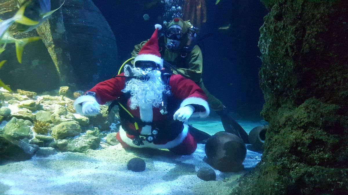 Pünktlich zum 06.12. kam der Nikolaus mit seinem Rentier zu Besuch und hat am Nachmittag die rund 1.500 Meeresbewohner im großen Ozeanbecken des SEA LIFE Oberhausen beschenkt. Zur Bescherung der besonderen Art hat er sich im weihnachtlichen Taucheranzug mit einem ganzen Sack voll fischiger Leckerbissen in das sechs Meter tiefe Becken gewagt.
