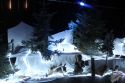 An den Messehallen angekommen ist noch lange nicht Schluss. Nun geht die Fahrt durch drei Hallen weiter. In der Halle A wird eine weiße Weihnacht präsentiert. Mit Schnee bedeckte Bäume in einer weißen Winterlandschaft können rechts und links vom Auto bewundert werden.
