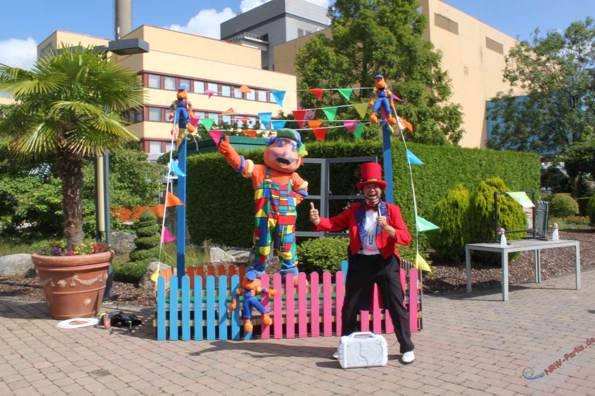 Standesgemäß empfing das Maskottchen Kernie die Besucher nach dem Eingang in einem Clowns-Kostüm und stimmte schon einmal darauf ein, was die Parkgäste erwarten durften. Ein Programm rund um das Thema Zirkus wurde den Besuchern in die Hand gedrückt. Dort war zu lesen, dass ein waschechter Zirkus auf dem Gelände des Wunderland Kalkar gastiert.